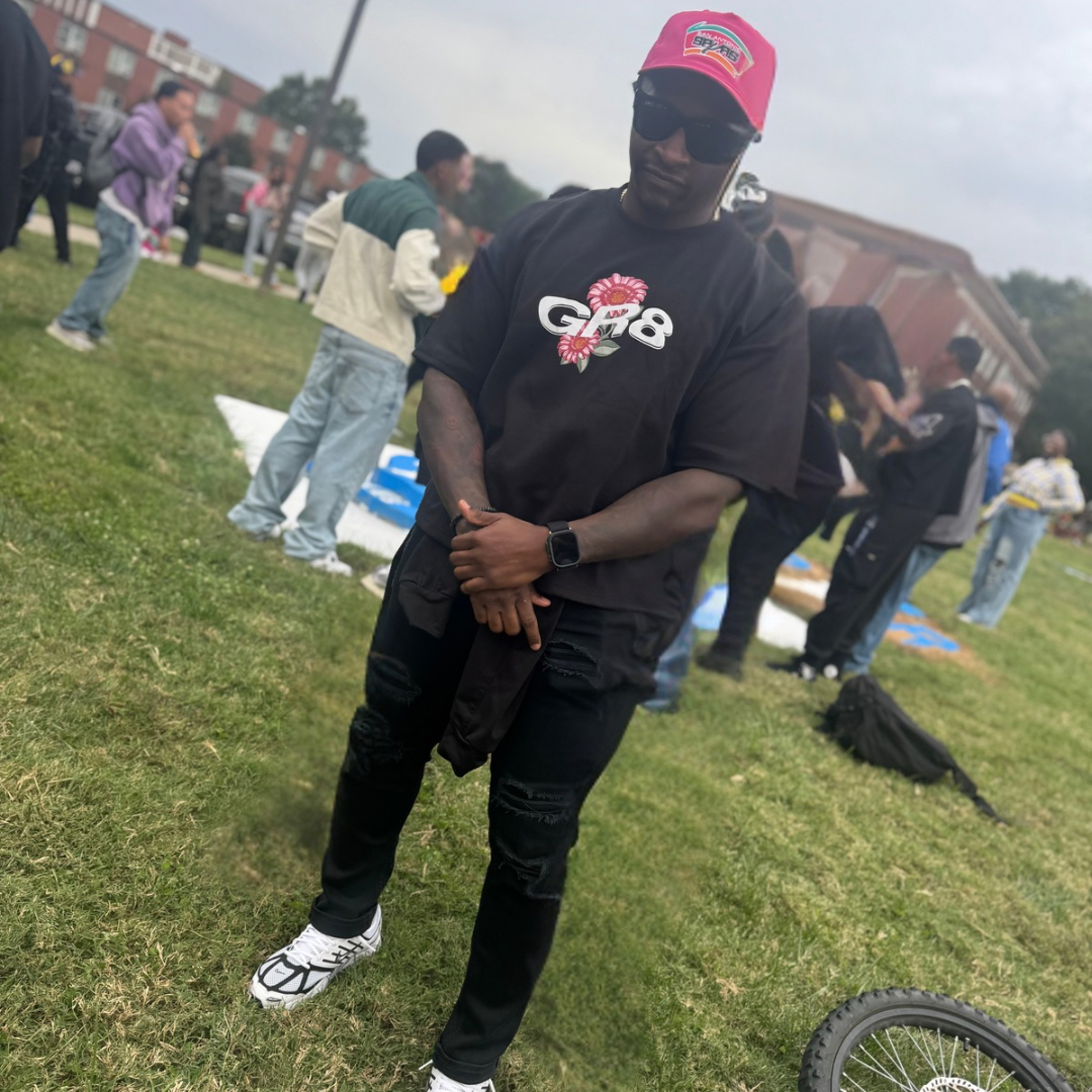 - Front Design: GR8 logo accented with floral detailing for a standout look.